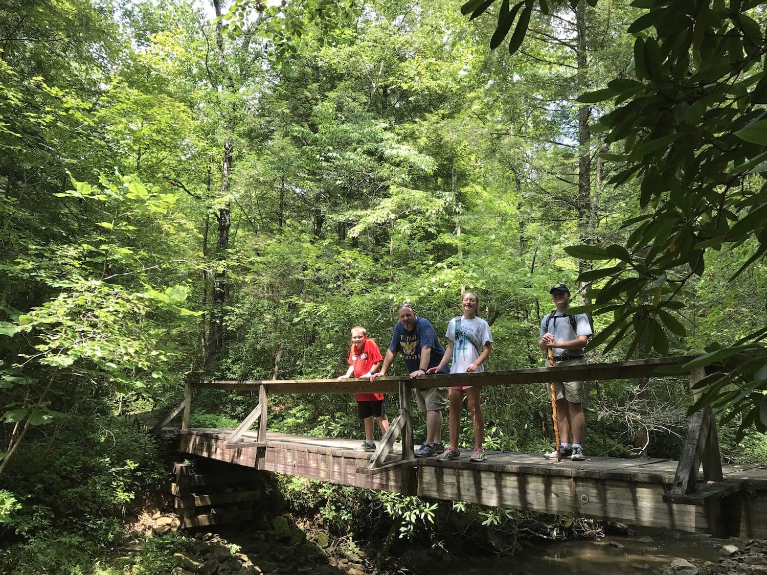 I always take my camera and snap lots of pictures. Our kids love to pose on top of tree stumps, under cave overhangs, and from the branches of a tree. They are often finding great pictures that tell a story. “Look, Mom! I’m pushing this tree up off the path!!!” My husband takes his camera so we can have different perspectives from behind the lens. This also guarantees that both of us are in the pictures. We both know the importance of being in the shot not just behind the lens!