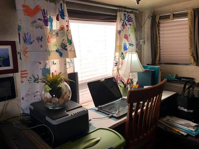 If you have some white material, you can create curtains to enjoy the handprints in your office. Mom has these DIY handprint curtains hanging where she can enjoy them everyday as she gets her work done.