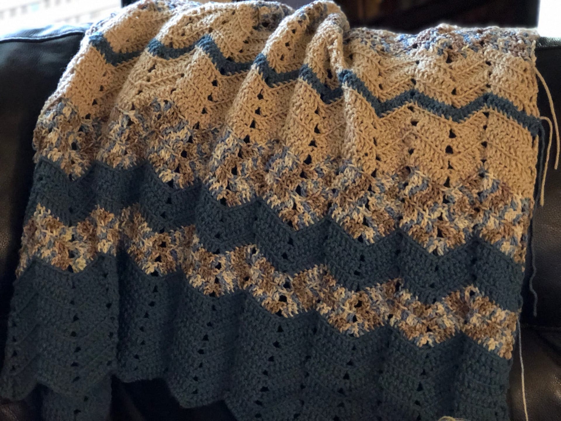 I started this afghan Thanksgiving weekend 2019 and couldn’t get the stitches right. I took it out and started over multiple times. Then after some help from family, I am now getting close to finishing up this afghan.
