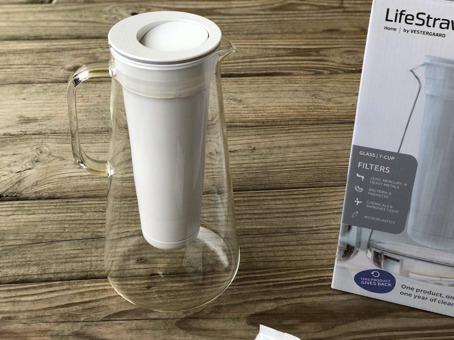 The 7-cup glass water filter pitcher protects against bacteria, parasites, microplastics, lead, mercury, chlorine and organic chemical matter. It retains essential minerals like magnesium and potassium that are good for your health.