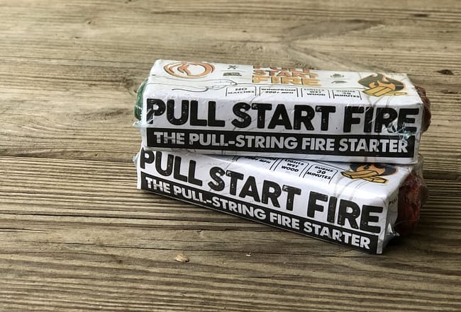 You might want to purchase a simple product called Pull Start Fire – Pull String Firestarter. This simple product will help you start a fire whether you are dealing with wind or wet wood and requires no matches.