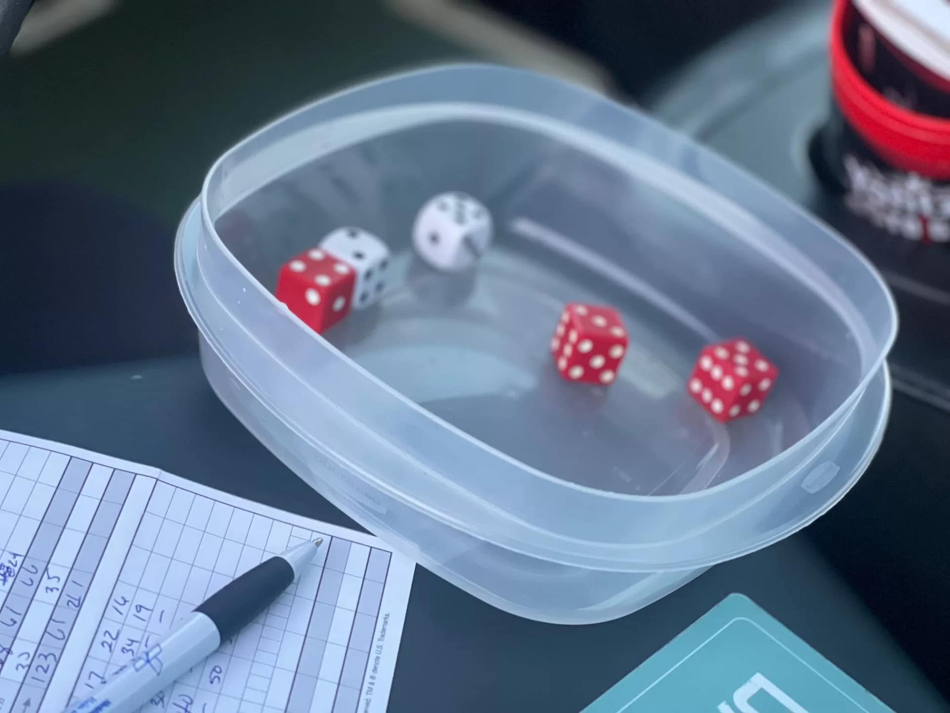 Since our family loves to play Rook, we keep a pack of Rook cards and travel Yahtzee in the car glove compartment so we will be ready for a fast game if we have extra time at a hotel or unexpected time waiting. A quick game of Yahtzee will even turn a full traffic jam into a memorable experience. Just roll the dice and have some family fun.