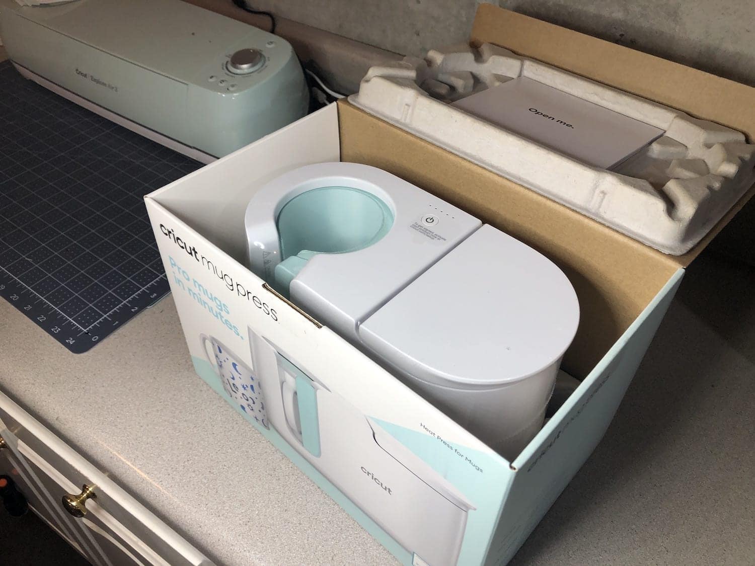 When you first open your Cricut Mug Press, you will need to plug it in to a wall outlet and then attach it with the USB charger that is included in your box. It will walk you through simple prompts to activate your new machine. Remember that this is a heat press and does require a Cricut printer and computer.