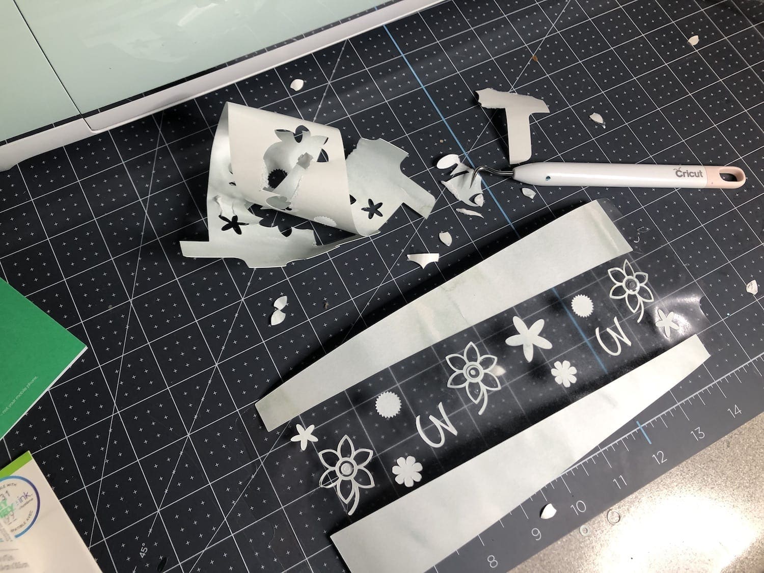 Once your design has printed, you can use the weeding tools to get rid of the excess.