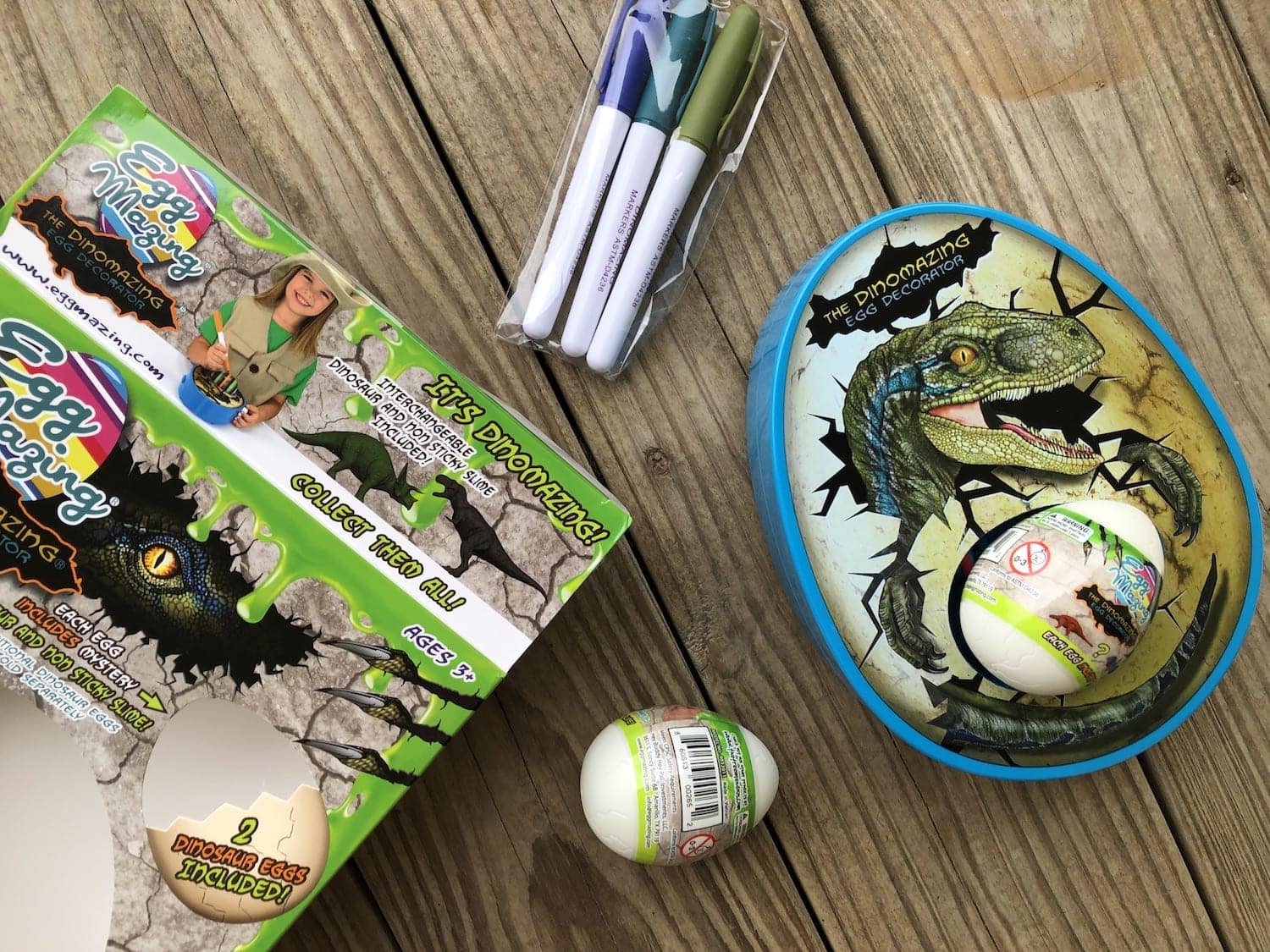 Perfect for rainy days or time under the deck when the sun gets too hot. Check out the DinoMazing Egg Decorator. Pop in one of the plastic eggs included with the kit and let the decorating begin. Use the different colored markers, to add stripes, lines or other fun “prehistoric” designs to decorate your egg.  Once the eggs are found you can “crack” open the shell to discover a surprise mini collectible dinosaur dripping in cool colored slime! Available on Amazon OR, Hide the eggs around your yard (or even inside the house) for the ultimate at-home scavenger hunt!