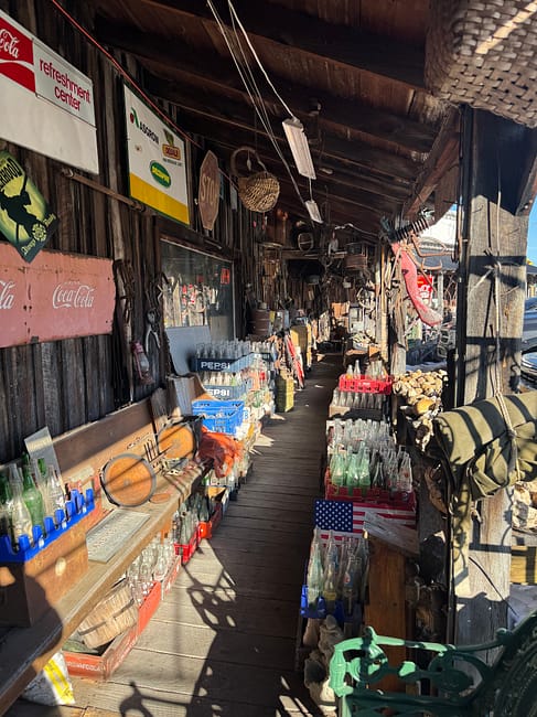 The Olde Gener’l Store is a unique place to visit. The porch area has hundreds of geodes and rocks. The middle sections of the store feel like a souvenir shop. But the ends of the store are full of thousands of old rusty tools, barrels, buckets, and things you may haven’t seen in years.
