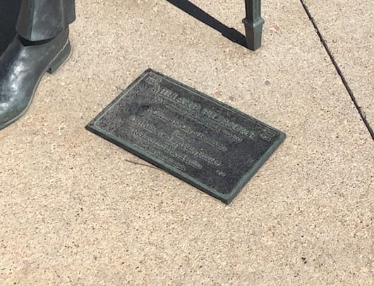 When you come up to the first corner, you will find your first bronze statue. Look across the street and you will probably see one on each corner.