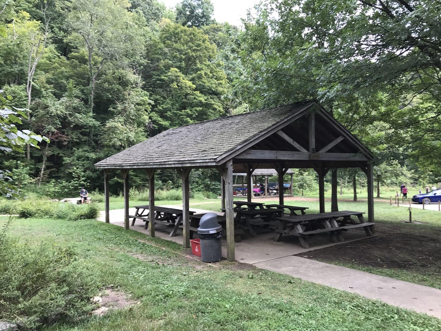 You can use either of the covered picnic shelters or enjoy the benches and tables scattered around the park.