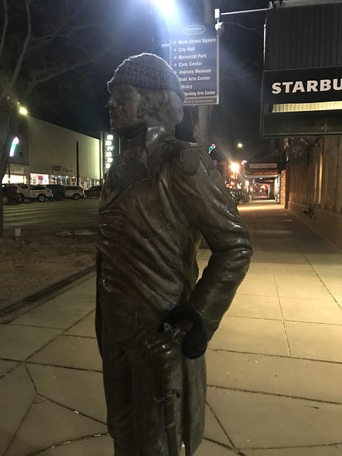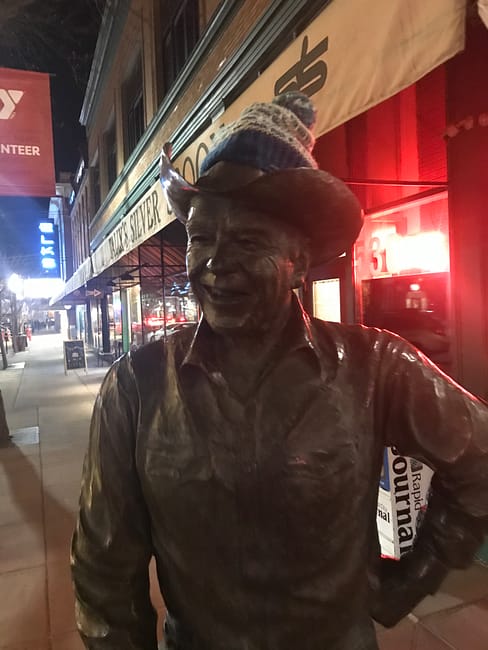 One city in South Dakota offers the homeless population hats and scarves throughout the long winter months. There are statues of each of the US Presidents on the downtown corners of Rapid City. People in the community bring hats and scarves to decorate the presidents and anyone who needs one can take it with them.