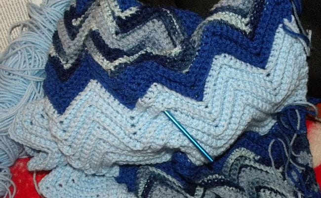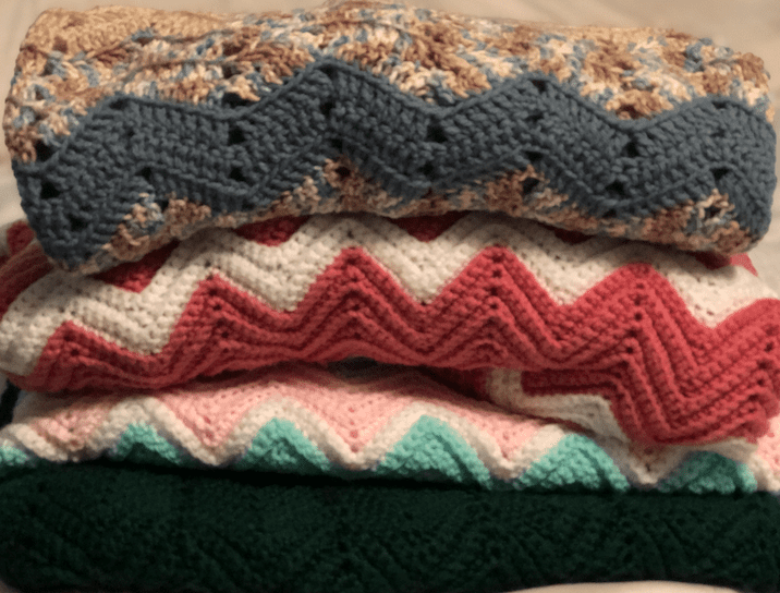 Grandma learned to crochet as a young girl from her Mom and made so many afghans that she lost count. Her favorite stitch was the chevron ripple although she did do a few with other stitches. Over the years, she made an afghan for each of her sons, grandkids, great-grandkids and countless other friends and family members.