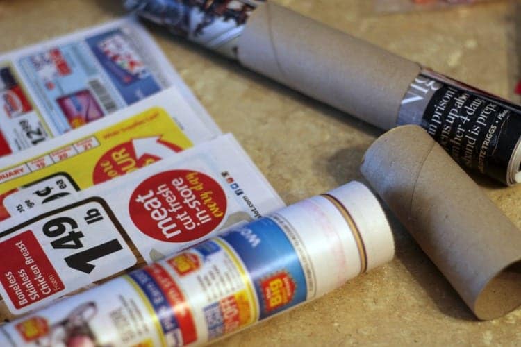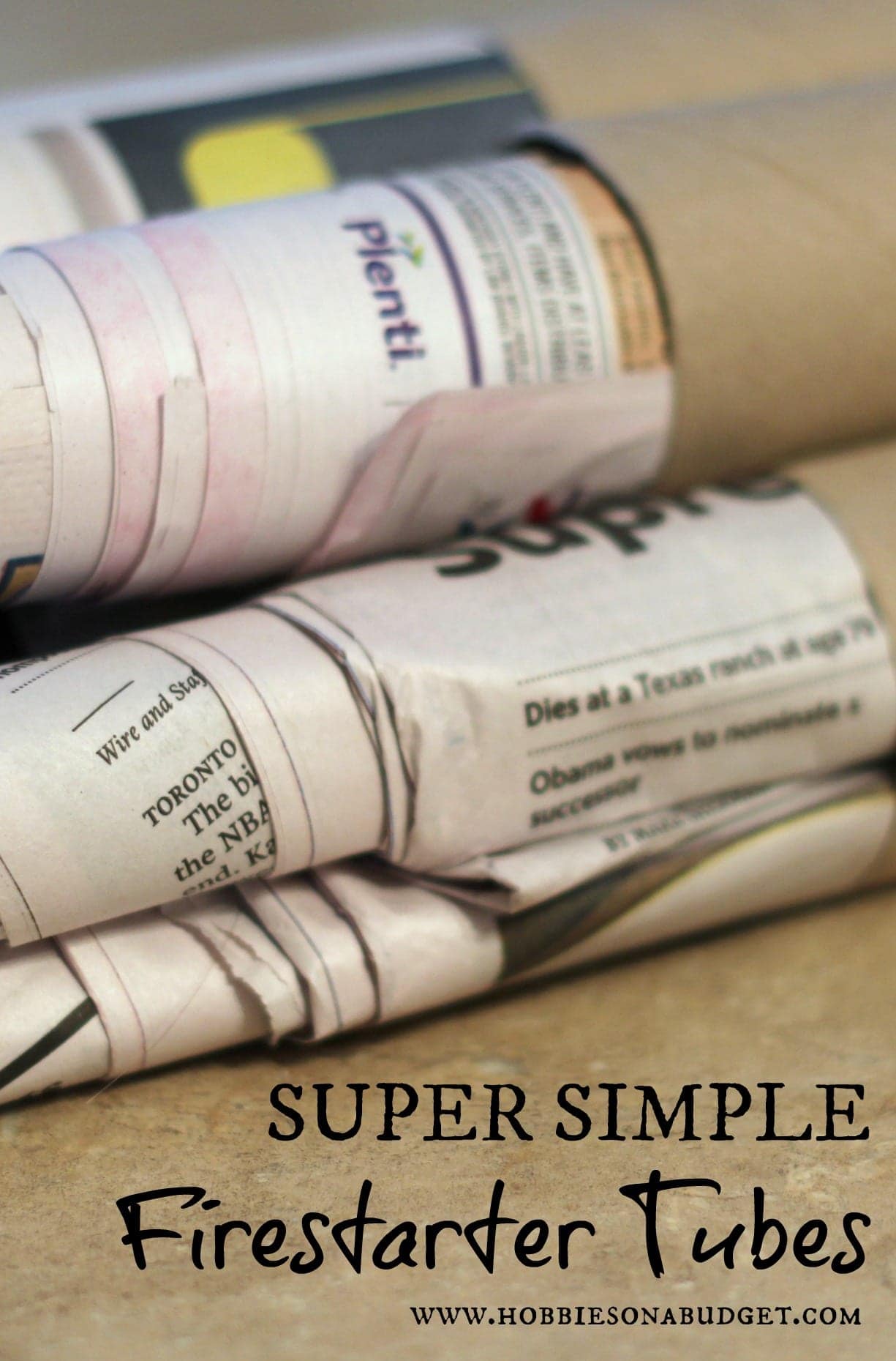 Last year, I showed you how to use dryer lint to make firestarters, but a few days ago, my husband rolled up some newspaper and made these super simple firestarter tubes.