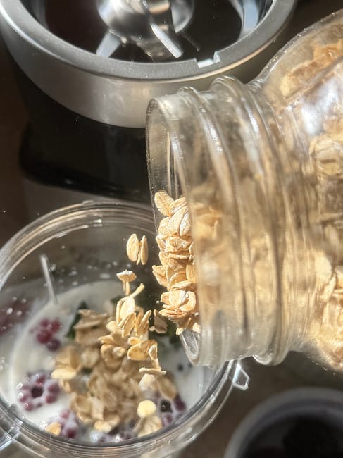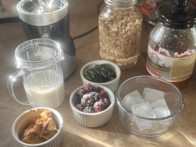 My daughter and I both enjoy a smoothie full of good ingredients that we can control. Our favorite smoothies are made with oatmeal, frozen berries (that we picked on the farm), peanut butter, local honey, milk and maybe even some frozen spinach. Even on busy school mornings when she is rushing out the door, we take a few minutes to toss all our favorite ingredients into the blender and enjoy something tasty and filling.