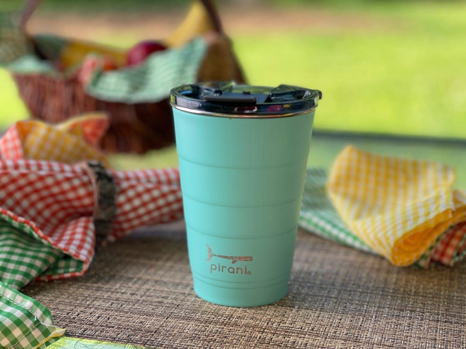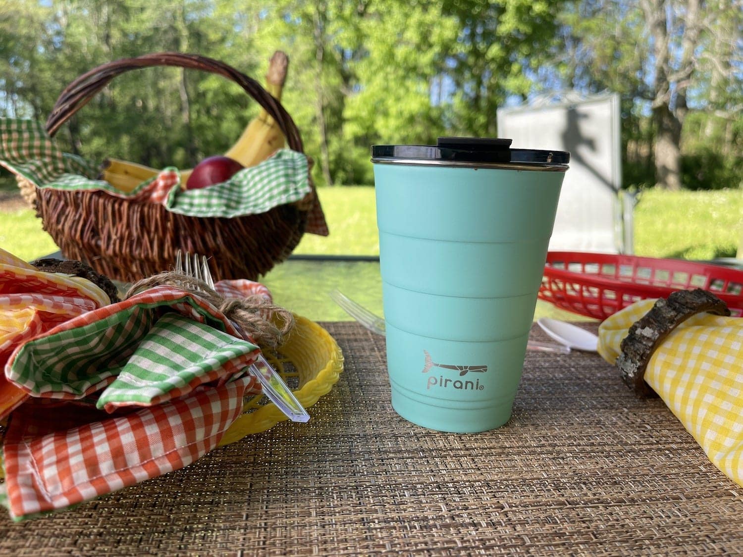 Why not take your picnics up one more step? Along with using fabric reusable napkins, why not use reusable picnic cups? We typically keep a sharpie marker on the picnic table when we have guests over so everyone can label their cups and use the same one the whole day. But with the Pirani reusable party cup you can keep your lemonade or tea cold for 12 hours or coffee and hot chocolate hot for 6 hours.