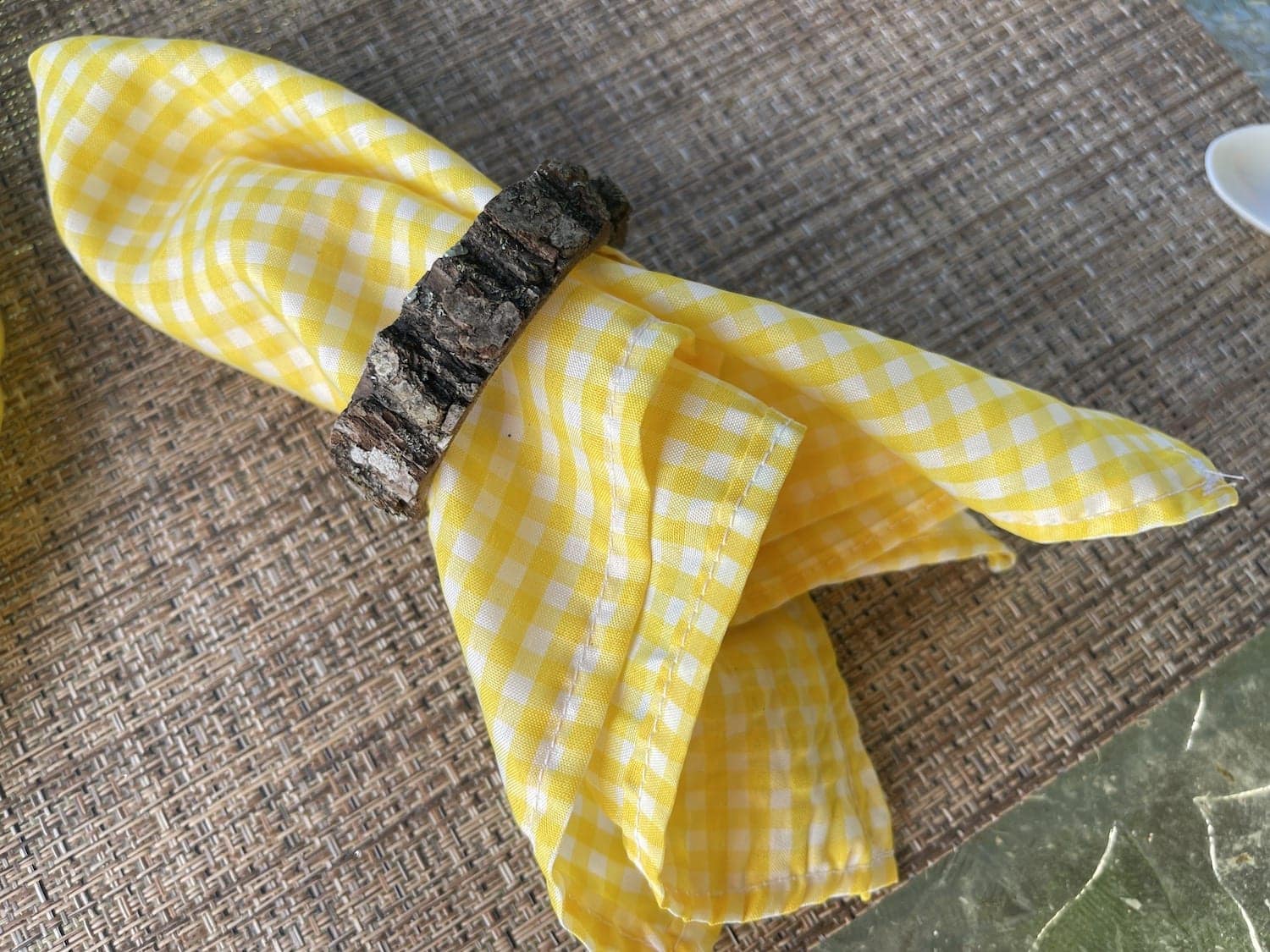 Now you are ready to fold your cloth napkins or fold them in a napkin ring and get ready for your first summer picnic. No napkin rings handy? Try these crafty ideas: