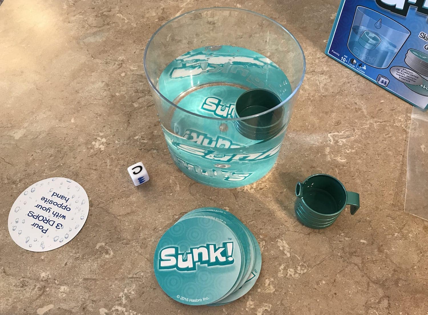 Sunk is the unique social, skill and action game where the task is to add water – one drop at a time – to the cup floating in the water filled Sunk tank, without causing it to sink. We had never played this game, but let me tell you…. this one is a keeper and a great family game! It may seem like a simple concept, but Sunk is much more difficult than you imagine! Super easy to learn, a little more difficult to win!