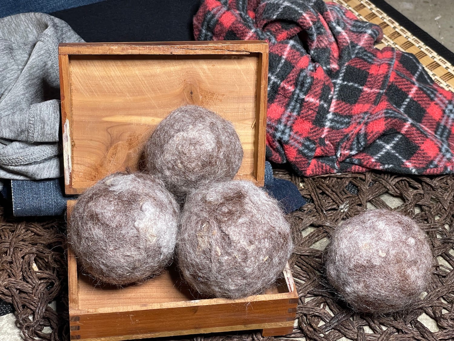 If you know someone who has alpacas, then ask to buy some of the alpaca fiber thirds. This excess fiber is cheap and make great dryer balls. Plus they make a realy fun gift when packaged up in a wooden box or pretty fabric bag.