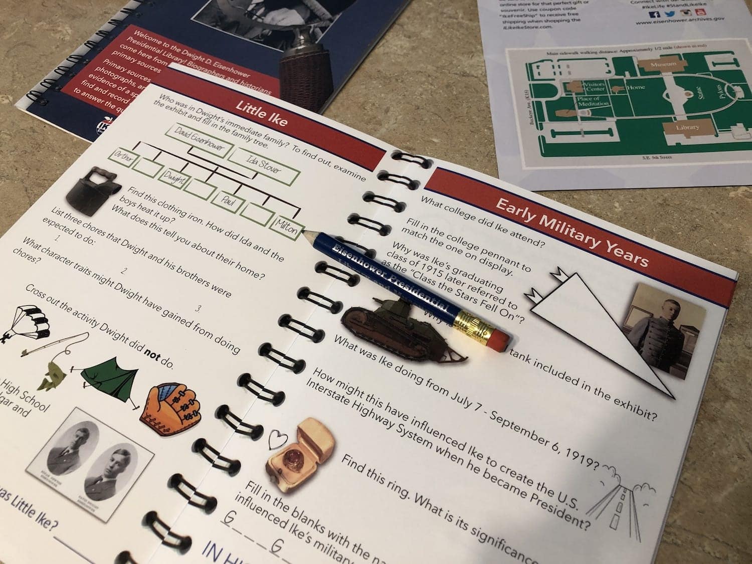 Pick up the Dwight D Eisenhower Notebook at the front desk so you will be ready to follow each exhibit and discover the inside story.