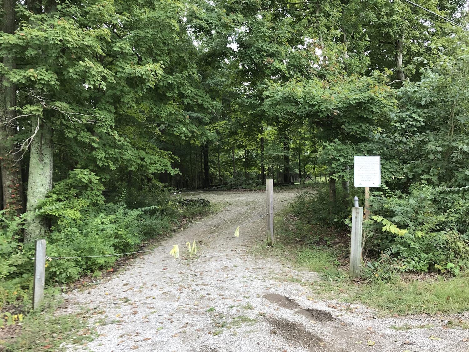 There is a small sign letting you know you are close and then you just see a small, almost hidden driveway to the left with a chain and a padlock. Once you unlock the padlock, you can lower the chain and enter the small parking lot.
