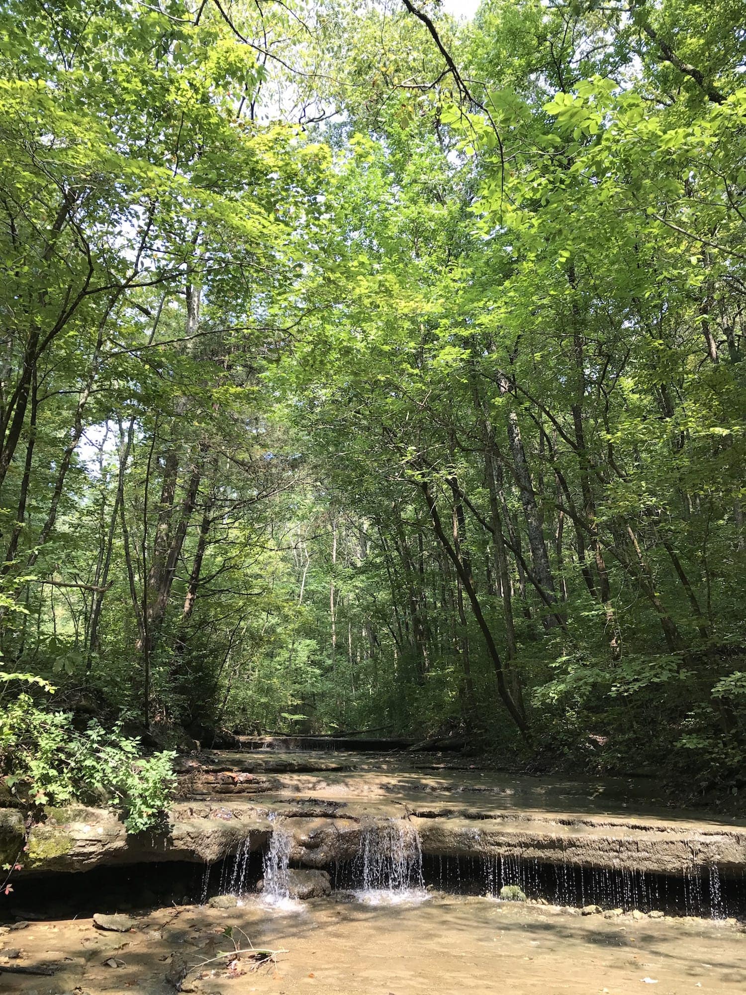 We opted to cross through the woods at the bottom of the path and take the road back up the hill to the waterfalls which gave us some really cool views of the creek that flows down below Fairmount Falls. The road is a pretty steep climb back up, so don’t get in a hurry!