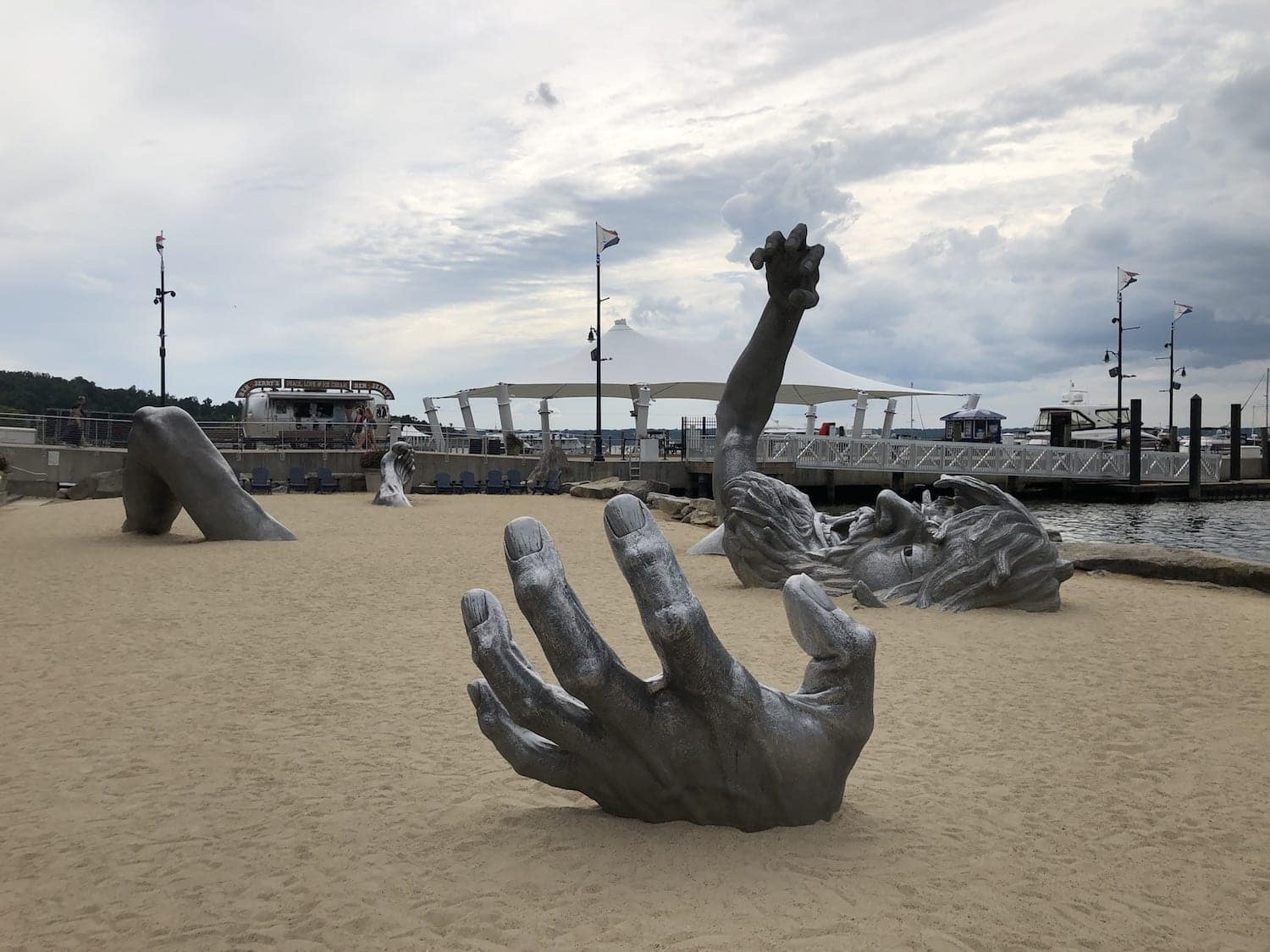 When visiting the National Harbor right outside Washington, DC, we were able to see and enjoy “the Awakening”. This monumental- scale public artwork The Awakening shows a giant, emerging from the earth (70 feet wide and l7 feet tall)