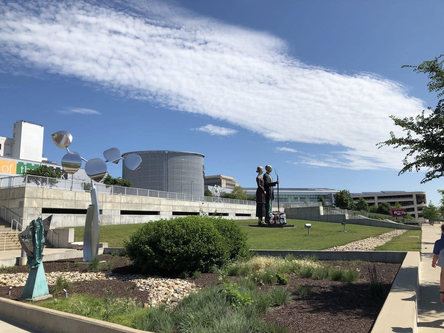 The Monumental Series of sculptures gives people the opportunity to explore how oversize scale impacts the emotions and feelings when people see the exhibits. These sculptures are often on the move. This summer we were able to see the massive “God Bless America” sculpture that is on display in front of the Peoria Riverfront Museum.