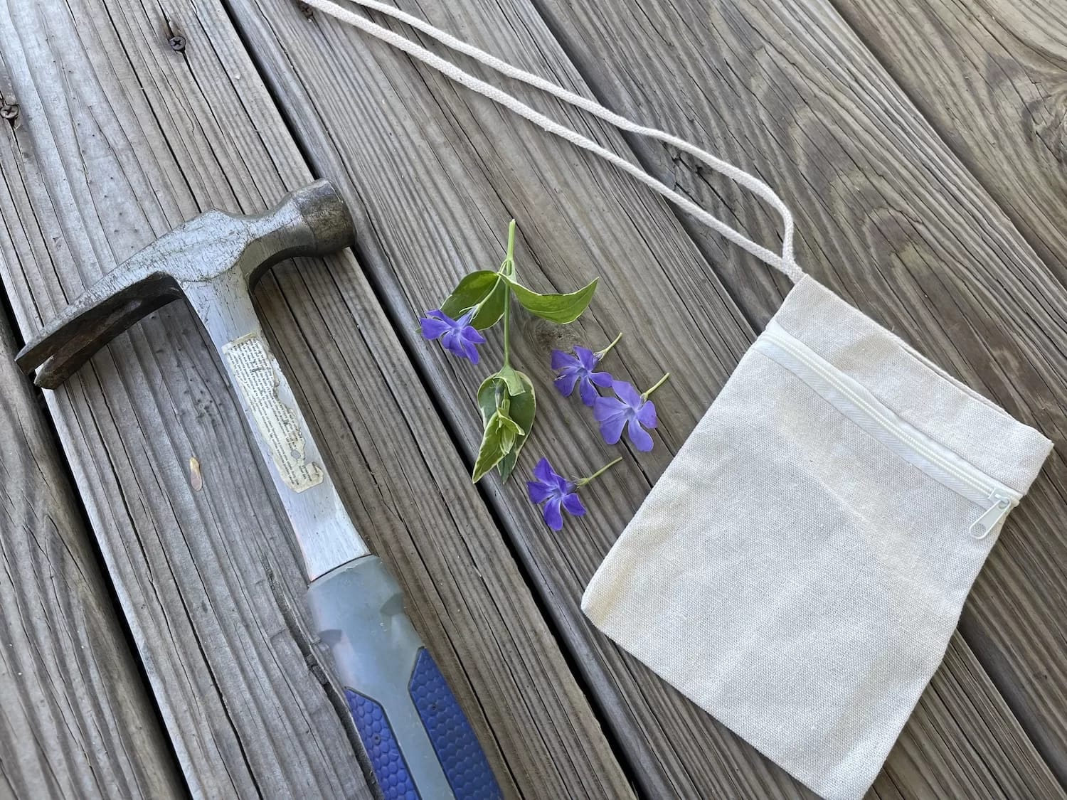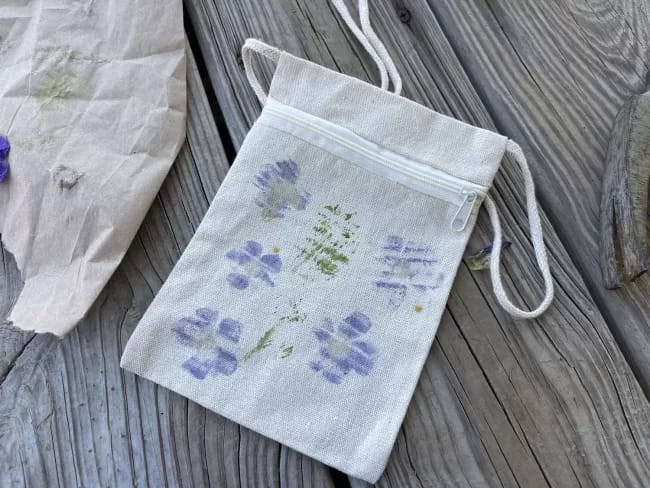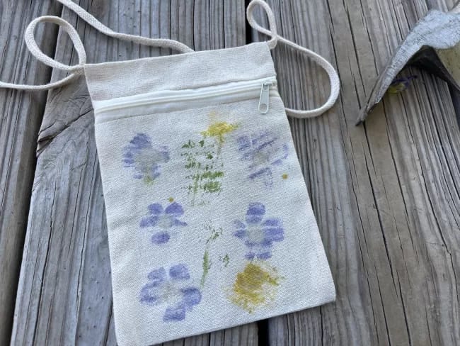 Have you seen people use a hammer to pound or stamp to transfer the color of the flowers onto the fabric? I have been watching these videos and wanted to see if it works. So recently, I picked a few purple violets and a yellow dandelion, pulled out a canvas lanyard bag, and a hammer to give this a try. The results are still very basic but I can see that this is a simple craft I would love to try again. If you are looking for a low-cost easy project to do this weekend, I suggest you try flower-pounding with fresh flowers.