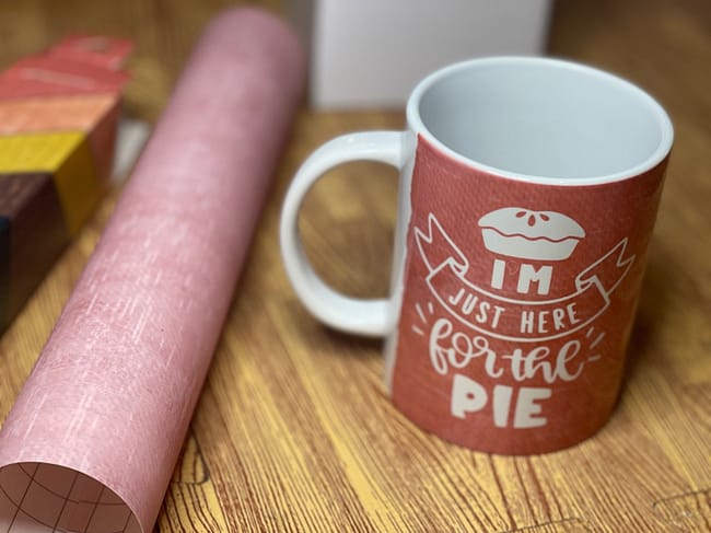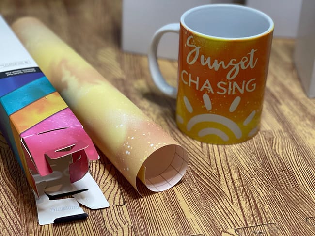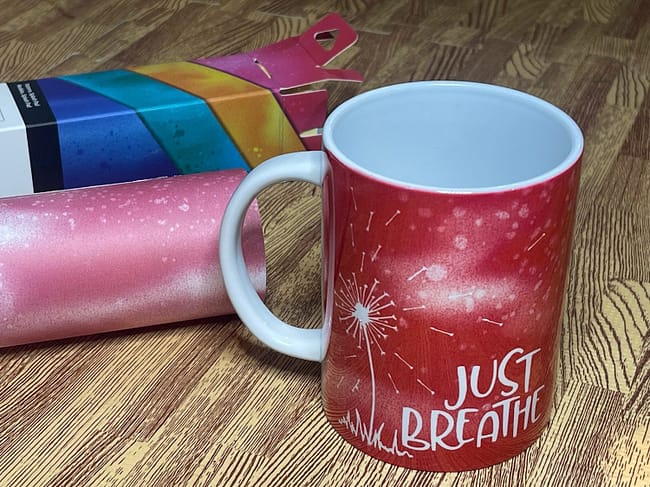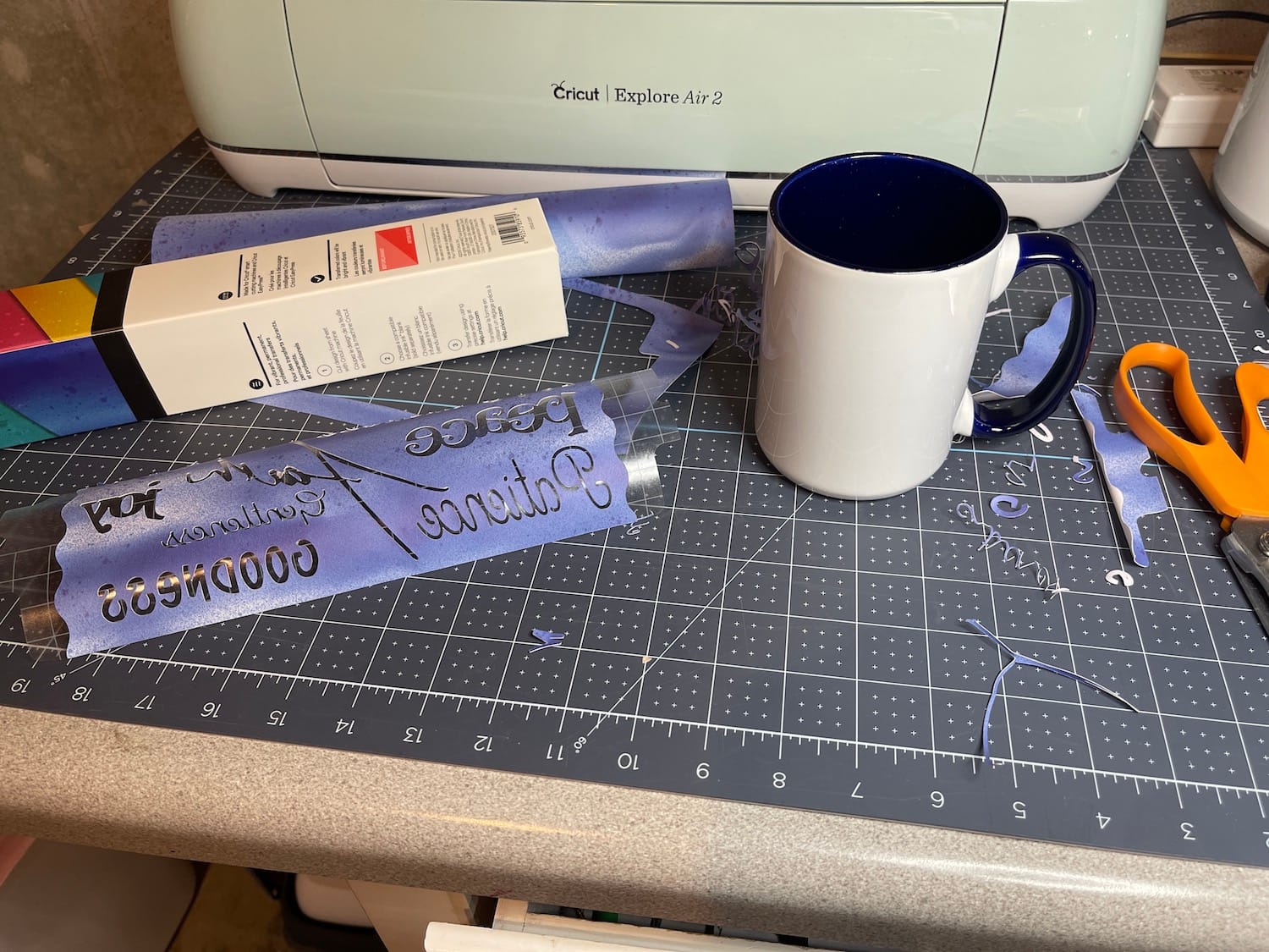 Weed the excess and use heat-safe tape to attach the design to your mug.