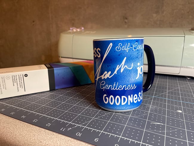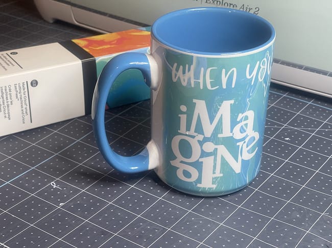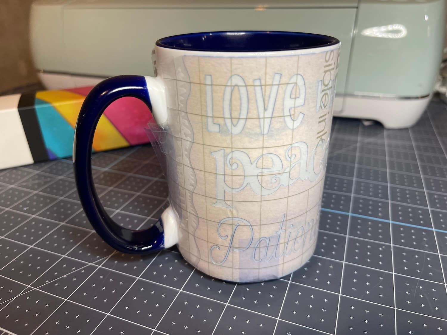 - Place the mug in the Cricut Mug Press and wait for the design to bake.