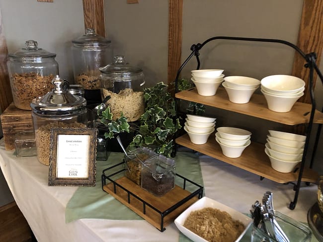 Breakfast is served each morning in the dining room for overnight guests. This is not your typical hotel breakfast. With a full hot bar, and all the fruit, cereal, and pastries you can imagine, this breakfast will keep you fueled all day!