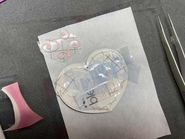 - Weed the excess infusible ink and use heat safe tape to attach the design to your sublimation hearts blanks.