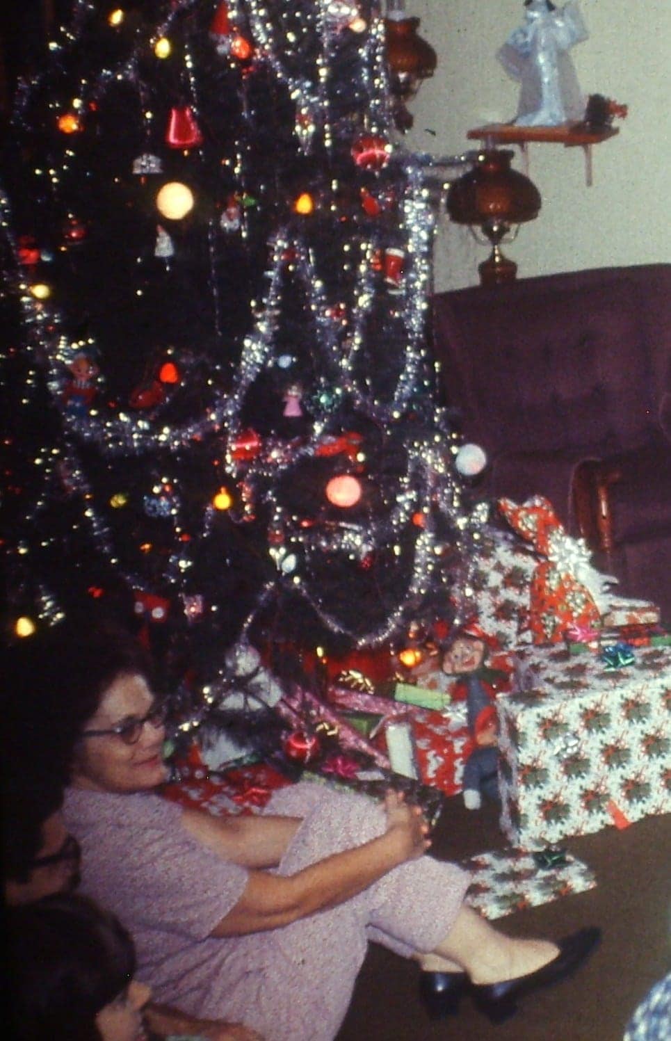 A few years ago for one of Grandma’s birthday parties, some of my family members took a bunch of slides that Grandma had in her closet and put them on the computer so we could all enjoy them. I took a few minutes to look through them and found some of these photos of Grandma enjoying the Christmas season with her family.