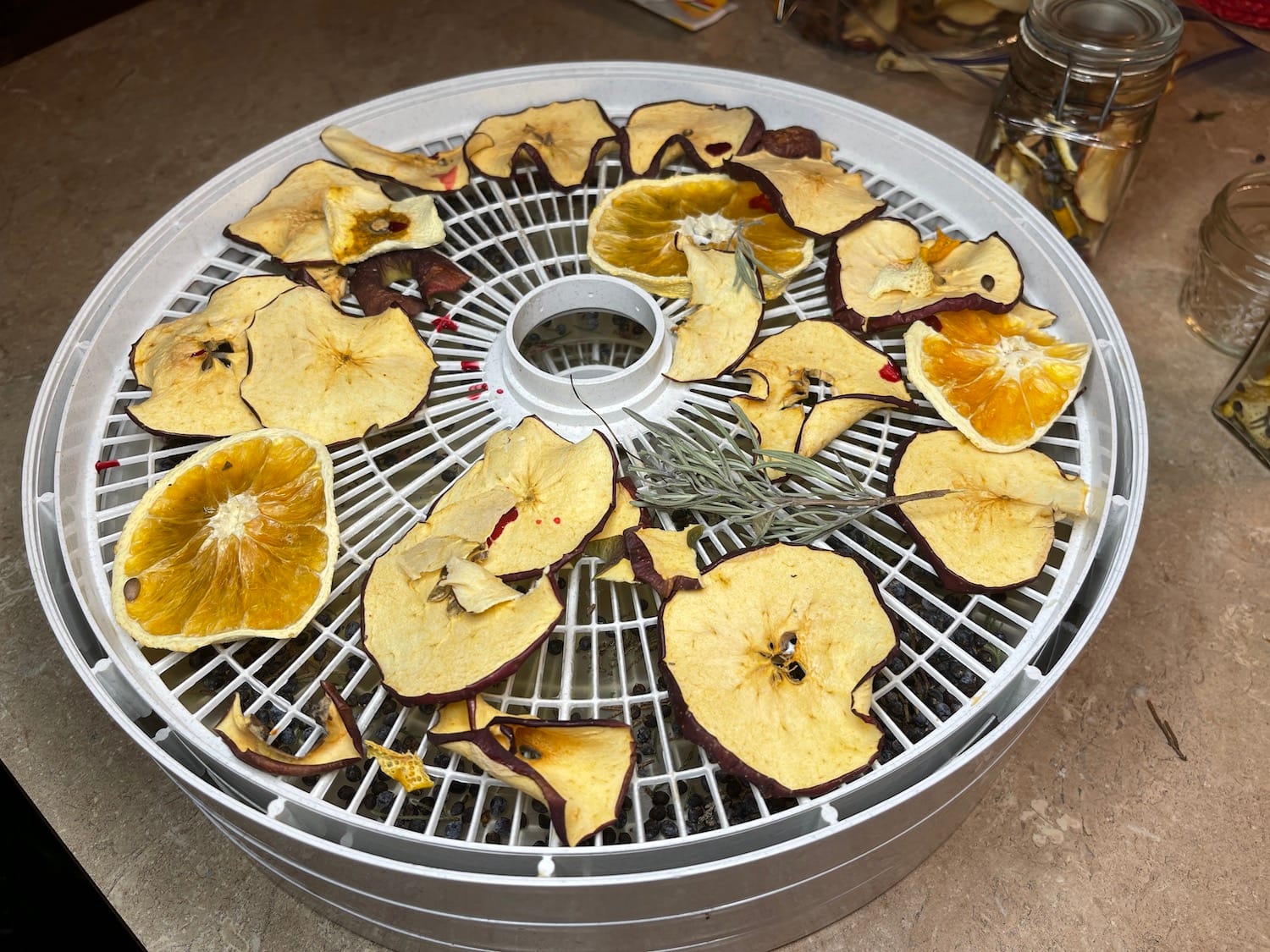 Last week I had a couple of apples and oranges that were past their prime and were no longer good to eat. Instead of throwing them out, I decided to slice and dehydrate them to add to a simple simmer pot potpourri. Now my home can smell warm and cozy each day of the holiday season plus I can share some of this with my friends and family as holiday gifts. Here are some simple steps to make your own homemade simmer pot potpourri.