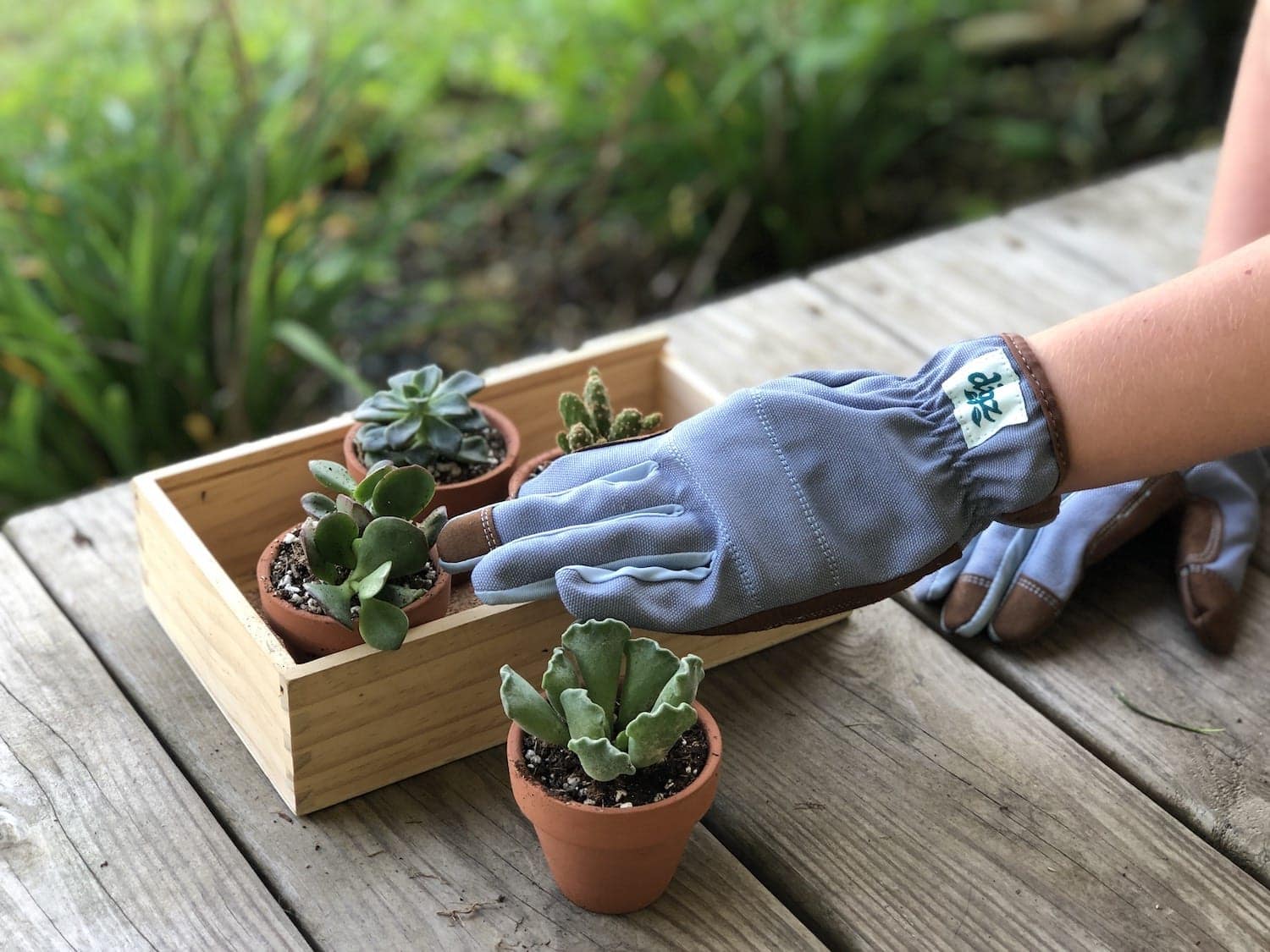 Don’t forget garden gloves when you start working with new plants. Whether you are working in the garden outside or replanting your succulents, garden gloves can protect your hands and even help keep your rings clean. I love these new Digz Gloves that come in three different lengths so I can pick and choose how much coverage I need when I am working with my plants.