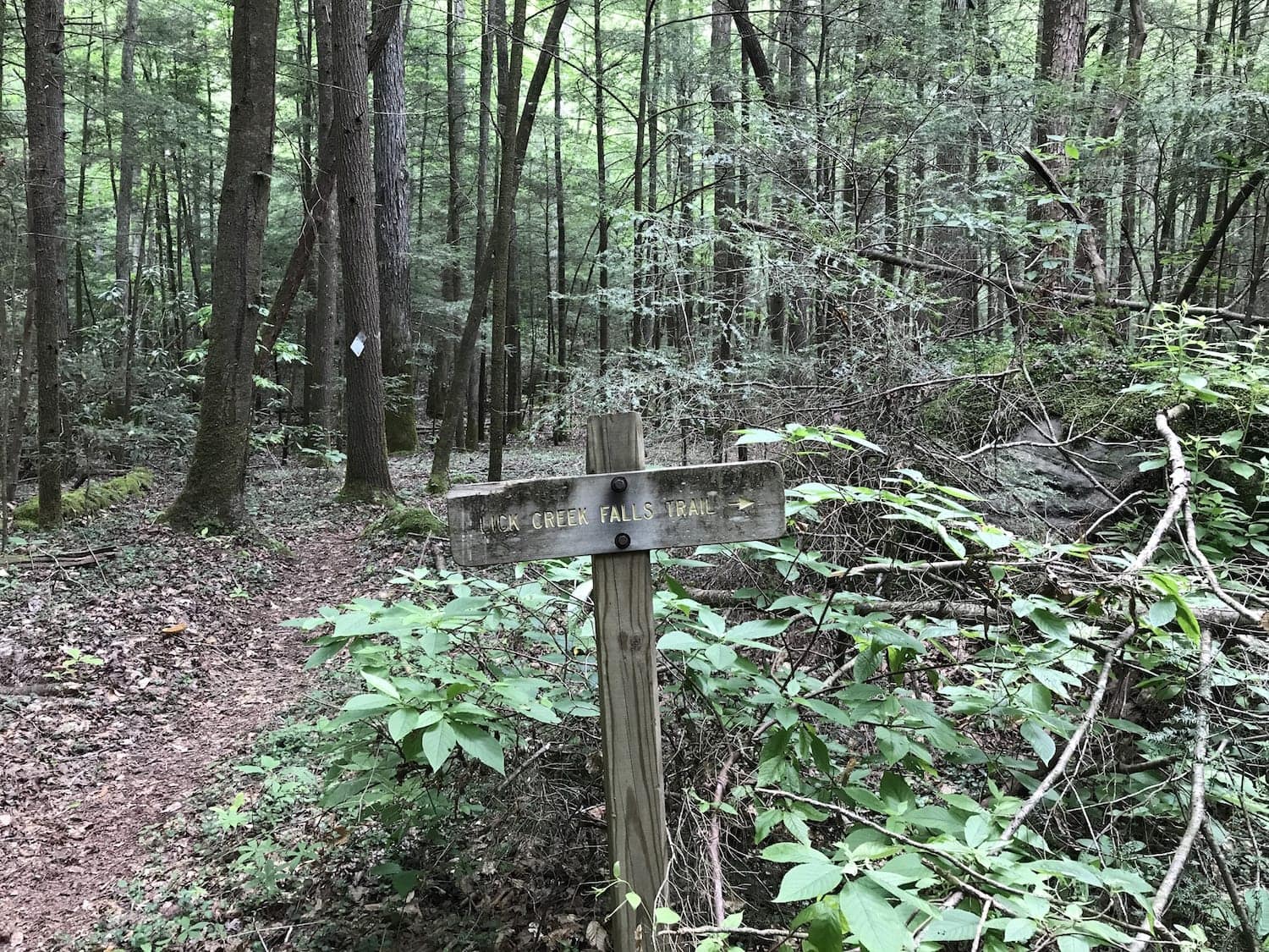 This trail will have you cross Lick Creek about 5 times. Each of the crossings is easy to follow and has obvious places to cross. You will see the trail marker sign at one of the crossings as well.