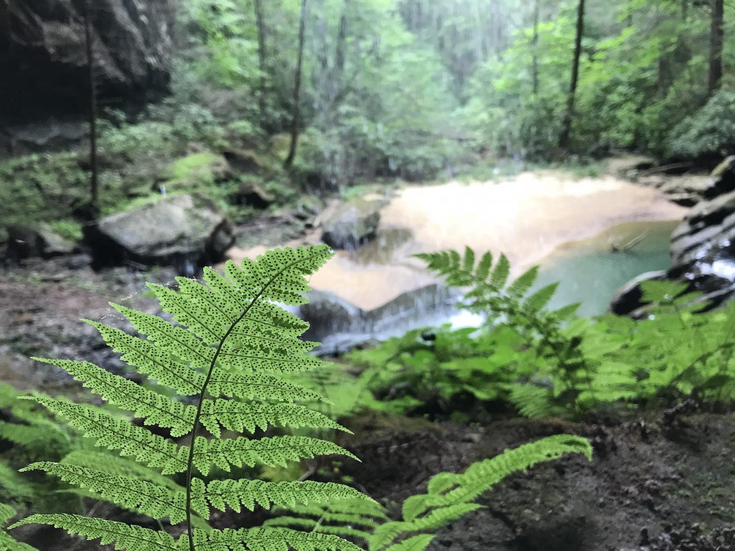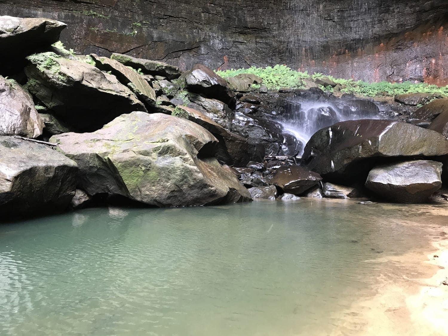 The green pool of water at the base of the Falls with the green ferns and the big rock boulders …. pictures from my phone just don’t do it justice! When you go on this hike, make sure you take pictures so I can enjoy it from your perspective too!