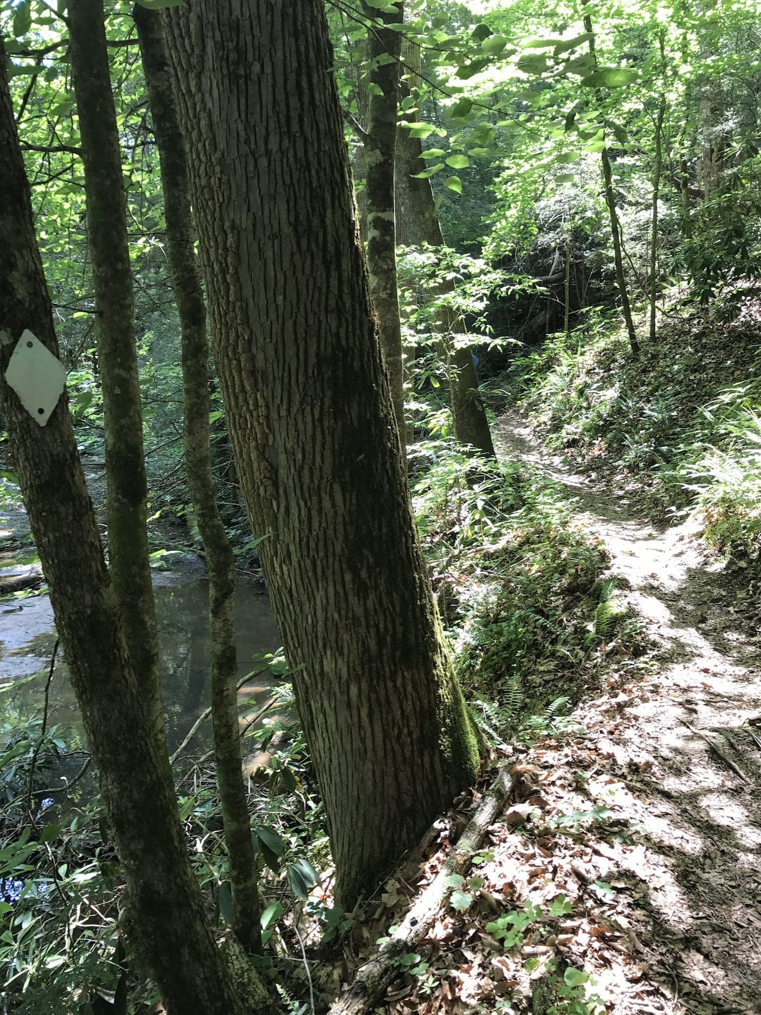 You will follow the white diamond markings on the trees for this trail.