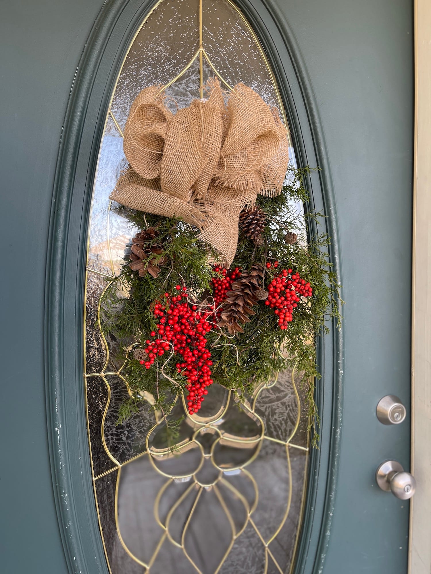 I’m not sure how long the fresh cedar will last on my door but I’m going to enjoy it as long as possible. And considering the fact that I have quite a few cedar trees in our yard, I will just replace the branches when needed.