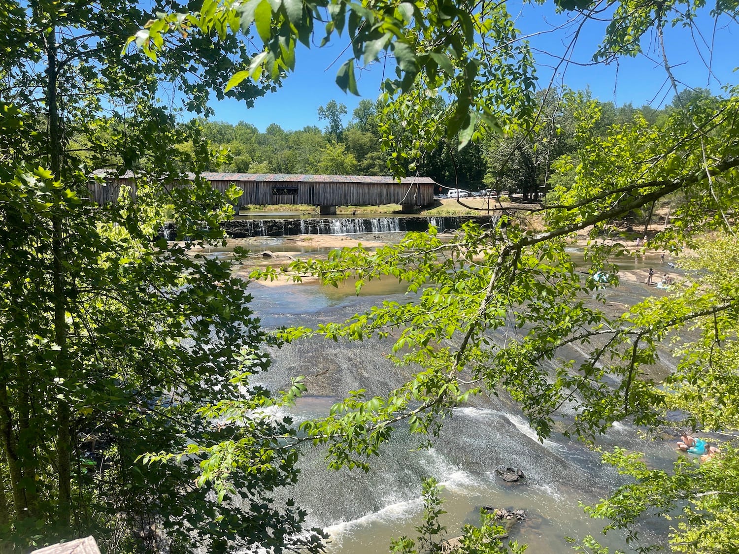 The park is an ideal spot for an afternoon picnic or a place to play in the cool river just below the bridge. When we were there on a hot day in June, there were people playing in the water, wading around the rocks and enjoying a picnic lunch.