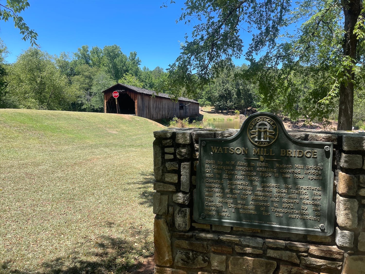 On a recent road trip, we discovered Watson Mill Bridge State Park which is the longest covered bridge in the state. The Watson Mill Bridge spans 229 feet across the South Fork River. At one time, Georgia had more than 200 covered bridges; today, there are less than 20 left.