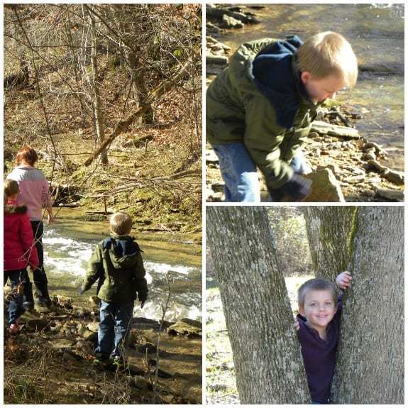 A few weekends ago we spent some time with our cousins. The kids had a ball rolling down the hill, collecting cool rocks and hiking down by the creek. The fun part is that I was out there with them. We almost fell in the creek but we had so much fun searching for a way to cross.