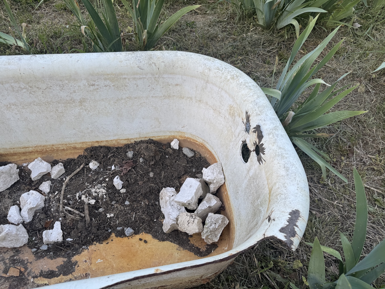 So my new plan is to create a raised bed in the bathtub and fill it with herbs and flower plants.