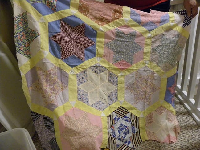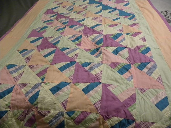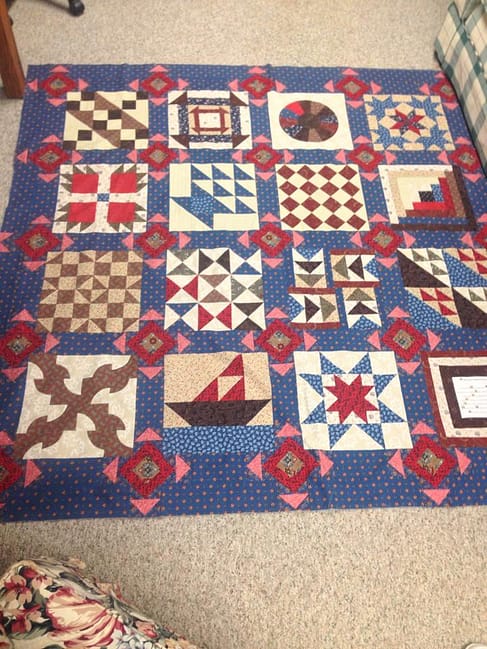 Once you have the quilt assembled, it’s an easy matter of running a straight stitch through each block. This will help the batting stay in place when the quilt is washed and dried.