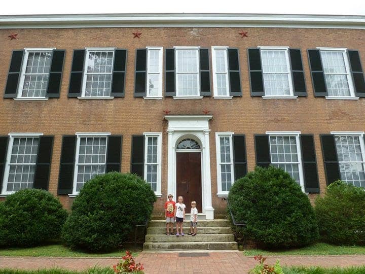 Have you been to My Old Kentucky Home in Bardstown, KY? This is the home that inspired Stephen Foster to pen the words “the sun shines bright on my old Kentucky home…..” The kids and I often stop here when we take trips to Louisville because the restrooms in the Visitors Center are always spotless and it gives us all a place to stretch our legs and take a little walk. But last summer we finally took the time to tour the house and grounds.