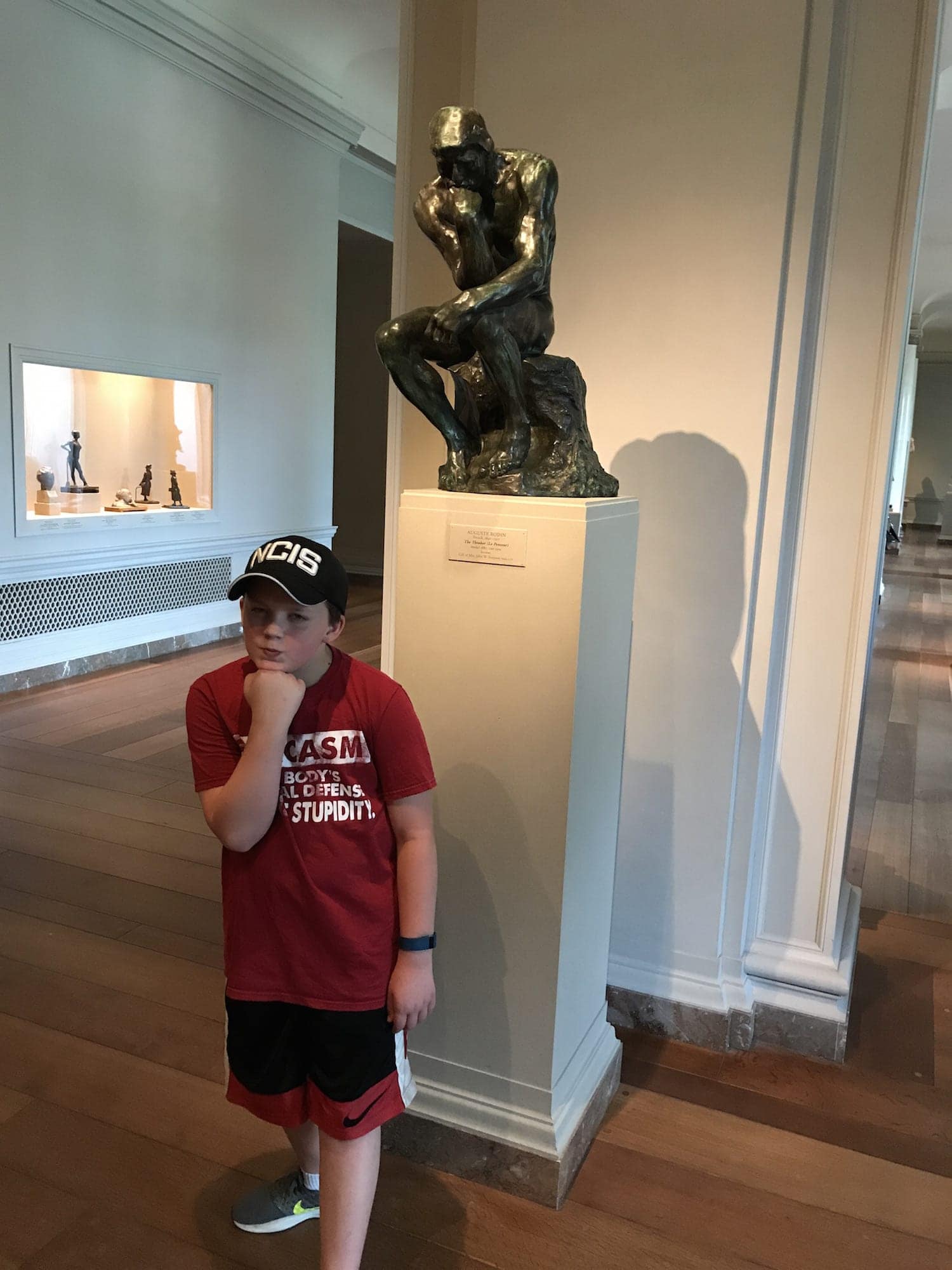 We love finding real life art pieces on exhibit that we have seen in popular movies, but unfortunately, Hollywood often takes creative liberties and doesn’t follow real life. Here’s an example: If you have seen Night at the Museum: Battle of the Smithsonian, then you probably remember the classic scene where the main characters Larry and Amelia are in the Smithsonian talking to the bronze sculpture, The Thinker.