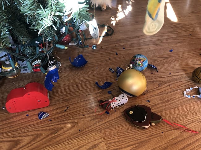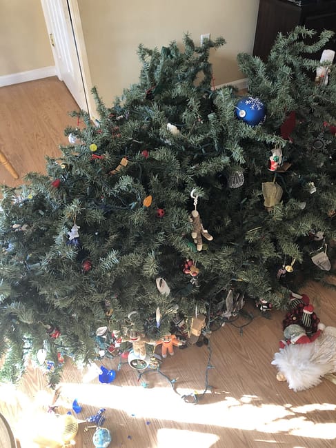 Last year we had an interesting experience with our tree. It did what many trees over the years has done – it came crushing down while I was on a work meeting. Fortunately, we only lost two ornaments and we were able to get it standing again. We balanced in a 5 gallon bucket of concrete the rest of the 2020 season! It’s not going anywhere again! But that means I have a new tree in 2021. Have you ever had this happen?