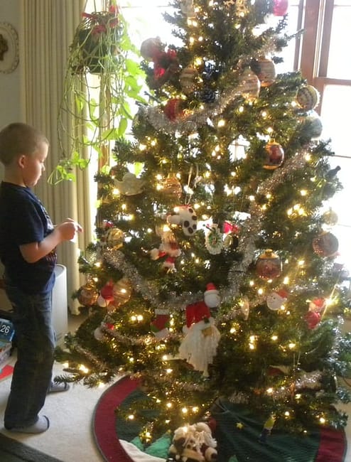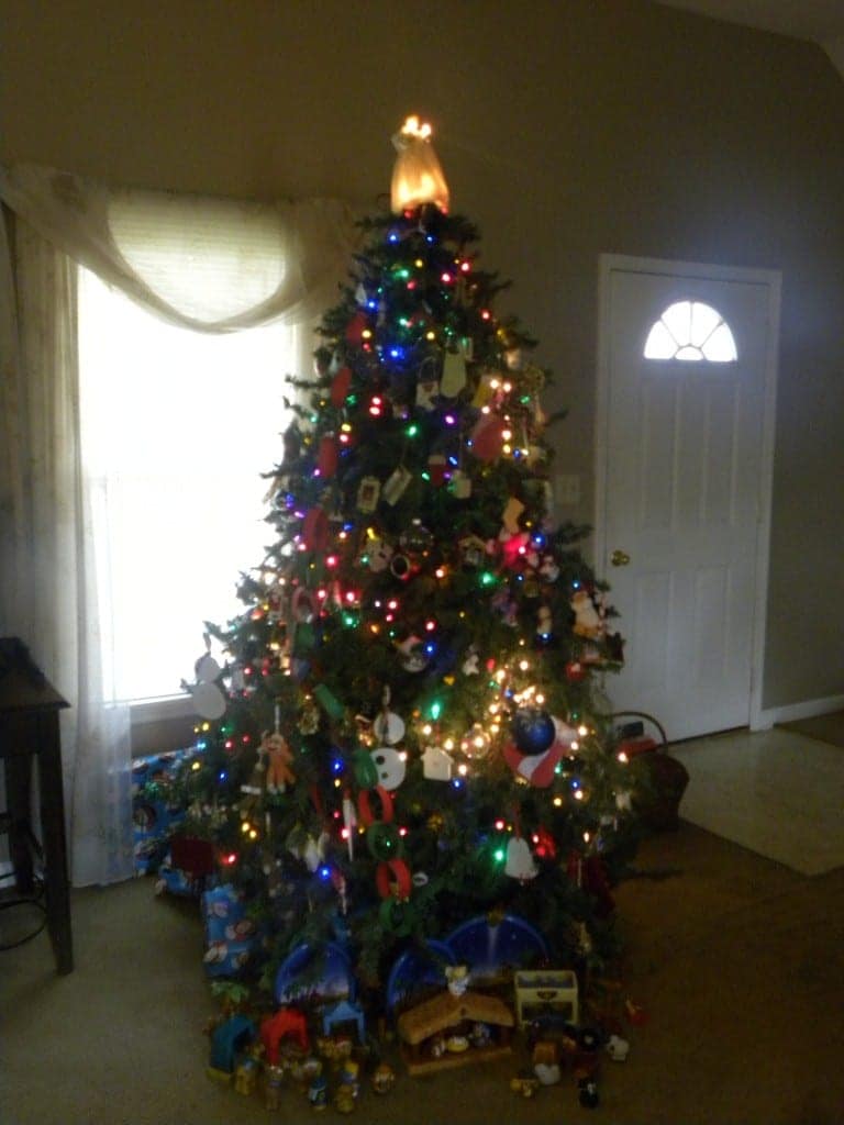 Our first Christmas tree was a little less than amazing but it was such a special tree. If you look really closely, you may be able to see the string that was holding it up to keep it from falling!