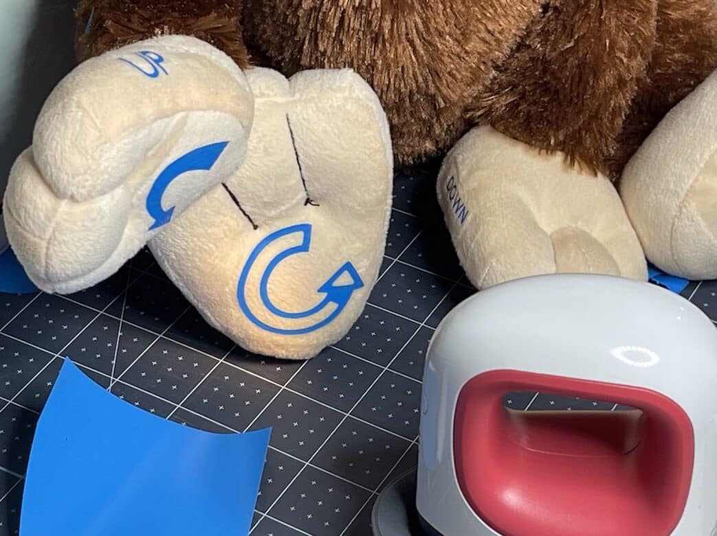 Turn a regular stuffed animal into a fun personal gift using heat transfer vinyl and the Cricut Mini Easy Press. Teach a small child their directions and make some fun memories.