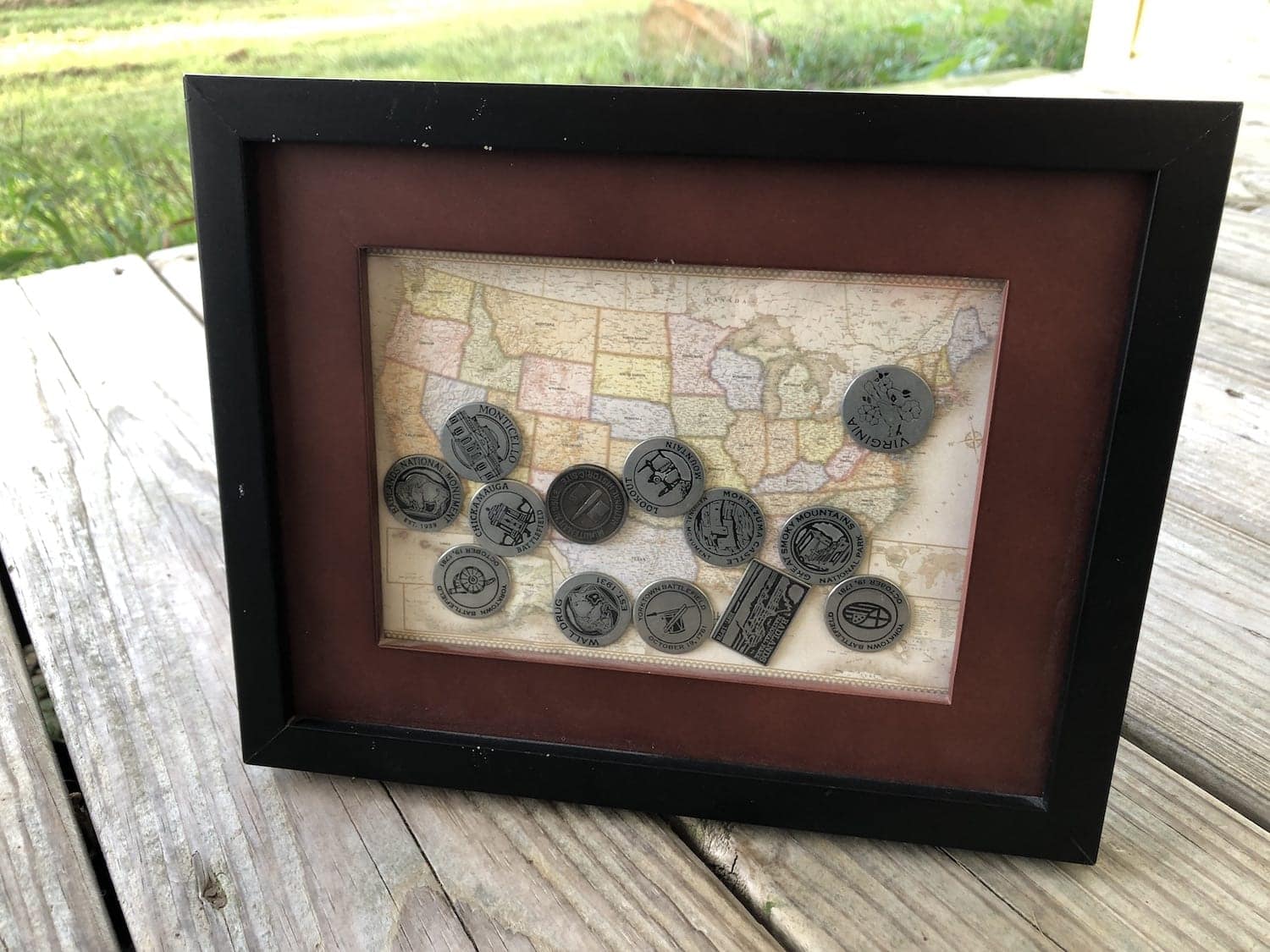 We are always looking for creative ways to showcase our love of adventure. My husband and son have been picking up collectible tokens on many of our road trips. Since these are inexpensive souvenirs and a fun collection to help remember our visits to these National Parks, Monuments and Scenic Attractions, I wanted a way to display them. If you love to collect these tokens too, I’ve got a super easy project to help you create a personalized collectible token dropbox.