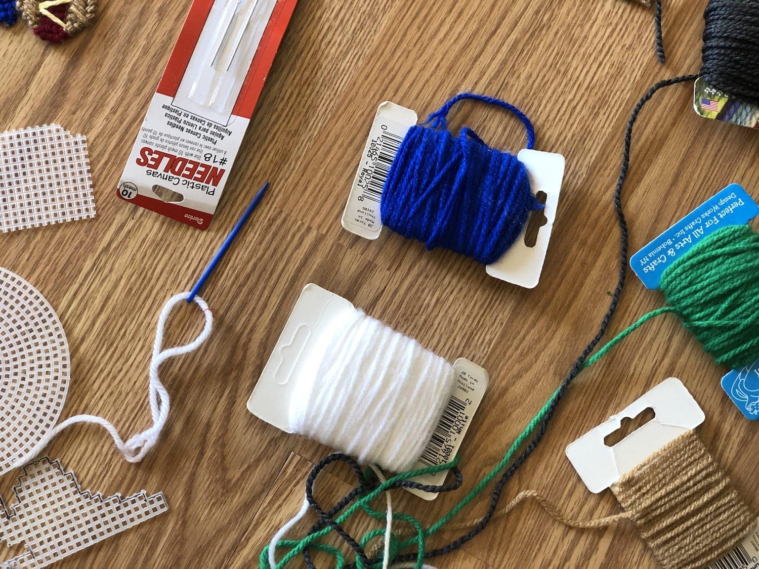 - Choose your yarn size. The smaller canvas sheets will use crossstitch thread while the larger sheets will use larger Needloft Craft Yarn.