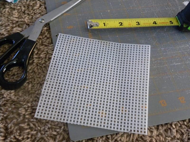 I came home and cut out a plastic canvas pattern to use for my square. The plastic canvas works better for me than cardboard and helps me keep all the pieces the same size.